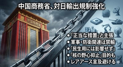 【速報】中国で日本向け輸出許可申請の審査停止、産業全体で