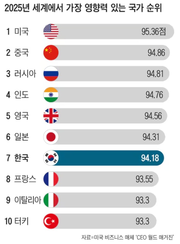 フランスを上回った韓国、「世界で最も影響力のある国」7位